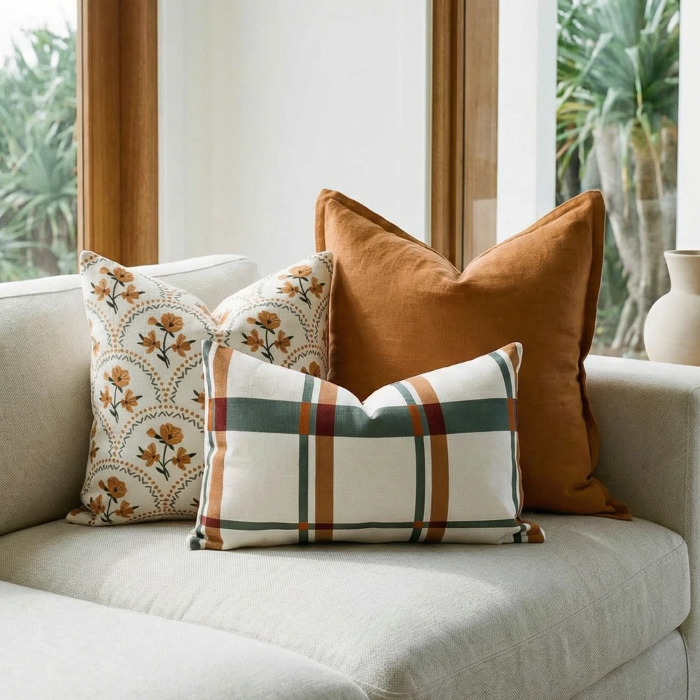 The Ginger Linen Cushion Cover introduces a rich, clay-toned hue with the relaxed texture of natural linen, helping anchor a layered cushion arrangement. The flanged edge gives a soft, considered finish, while the fabric develops character over time. Machine washable and thoughtfully made, it’s a versatile piece for calm, well-styled homes.