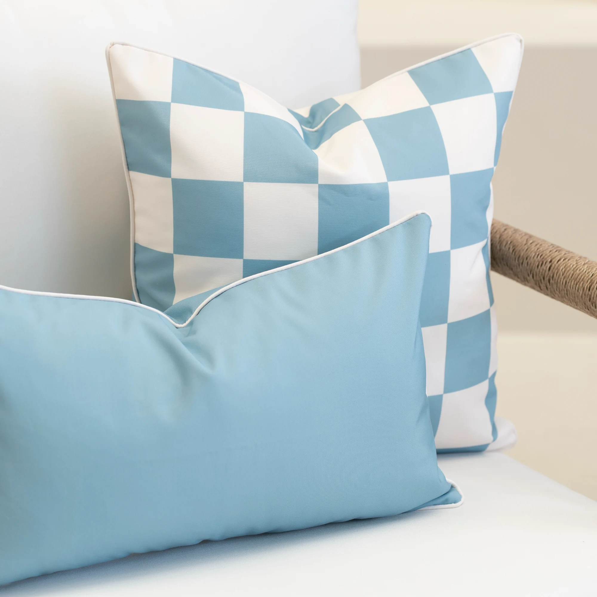 Cool and coastal, the Tropica Aqua Waterproof Check Outdoor Cushion Cover brings a breezy, relaxed tone to outdoor lounges. This aqua check cushion works effortlessly with other Tropica pieces for a cohesive look. Designed for outdoor conditions, its UV- and water-resistant fabric with 400-hour fade resistance helps maintain colour in Australian environments.